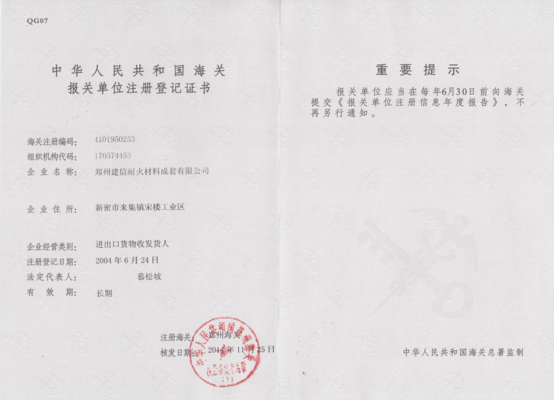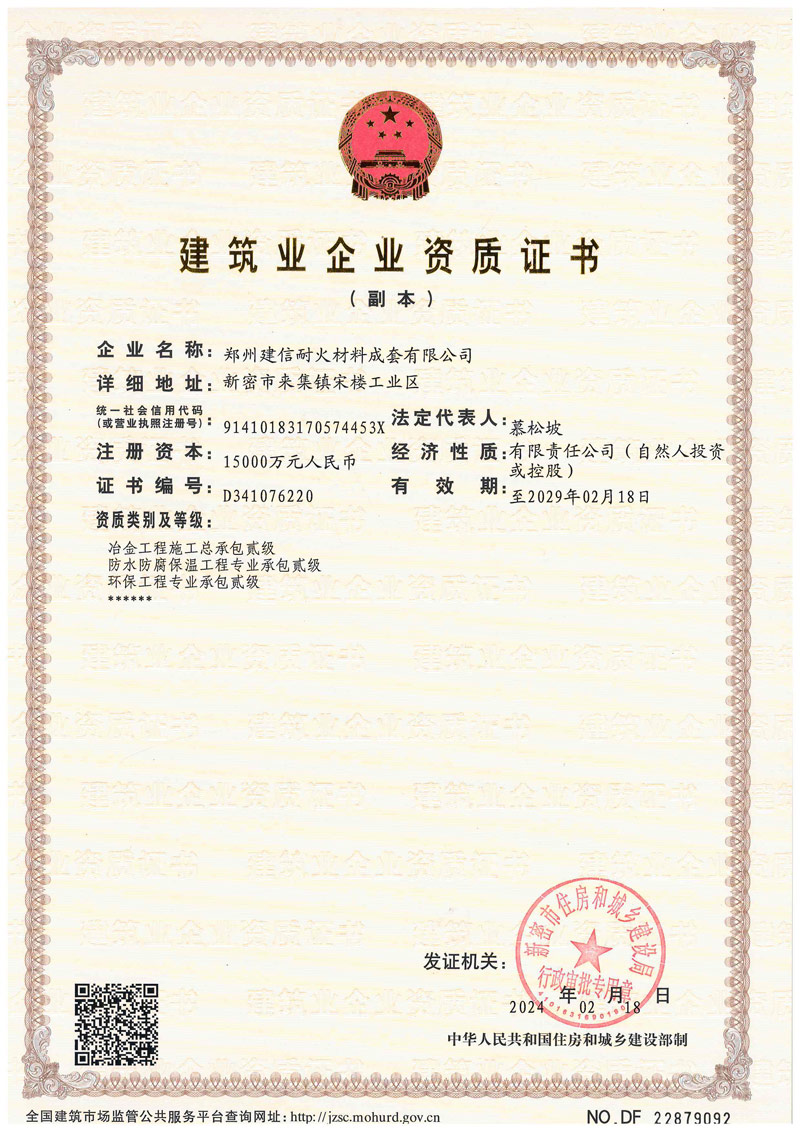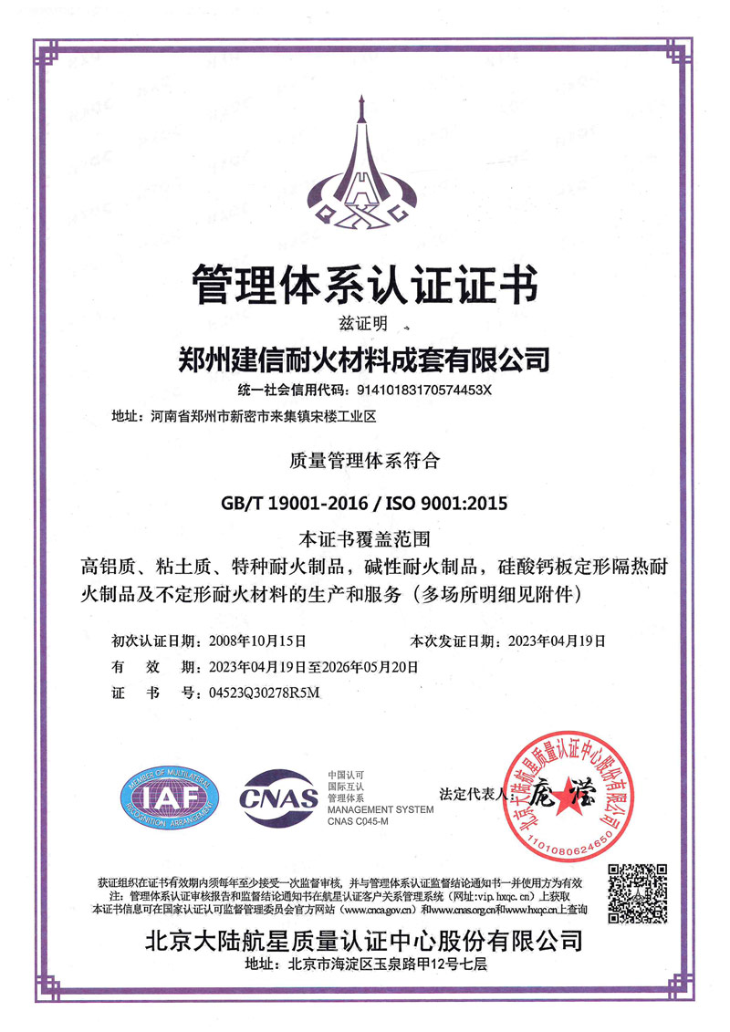 鄭州建信耐材先后參與起草國家建材及行業(yè)標(biāo)準(zhǔn):《高鋁抗剝落磚、系列耐堿磚及系列硅莫磚》、《水泥回轉(zhuǎn)窯協(xié)同處置用耐火材料抗侵蝕實(shí)驗(yàn)方法》、《耐火材料及砌筑使用規(guī)程》和《石灰窯砌筑技術(shù)條件》。公司近年來先后榮獲“國家科技型企業(yè)”、“高新技術(shù)企業(yè)”、“河南省綠色工廠”“河南省綠色發(fā)展先進(jìn)型企業(yè)”“環(huán)保績效A級(jí)企業(yè)”、鄭州市“專精特新企業(yè)”“市長質(zhì)量獎(jiǎng)”等殊榮。