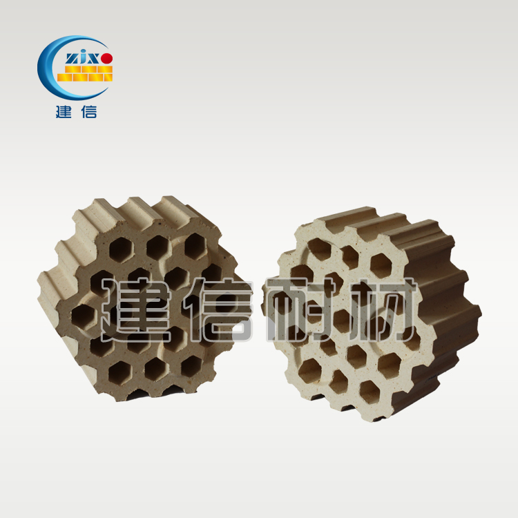④抗堿侵蝕,F(xiàn)e?O?≤1.5%,抵御高爐煤氣中K、Na蒸氣腐蝕。主要應(yīng)用于高爐熱風(fēng)爐蓄熱室,堆砌成規(guī)整孔陣,在燃燒期吸收1200-1350℃煙氣余熱,送風(fēng)期釋放熱量將空氣預(yù)熱至1100℃以上,提升熱效率至85%;