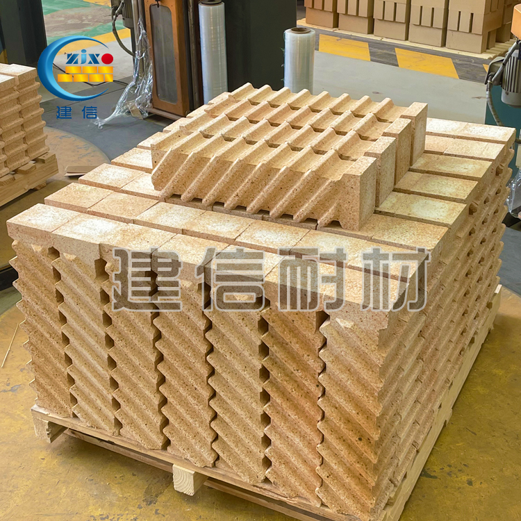 建信耐材所生產(chǎn)的爐頂?shù)鯍齑u是以高鋁礬土(Al?O?≥60%)或莫來石為主料,結(jié)合磷酸鹽結(jié)合劑制成的異形耐火制品,耐火度>1750℃,荷重軟化溫度>1550℃,顯氣孔率<18%,常溫耐壓強(qiáng)度>45MPa。其異形結(jié)構(gòu)(如吊耳、凹槽)適配金屬吊掛件,確保爐頂襯體穩(wěn)固懸掛,兼具抗熱震性(1100℃水冷循環(huán)>15次)及抗剝落能力,高溫體積穩(wěn)定性好(線變化率<0.5%)。