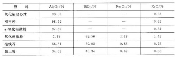 采用氧化鋁空心球、電熔剛玉粉、α-Al2O3微粉、SiO2微粉、硅線石以及粘土粉為原料制備具有抗剝落性能的氧化鋁空心球磚。原料成分見表1。